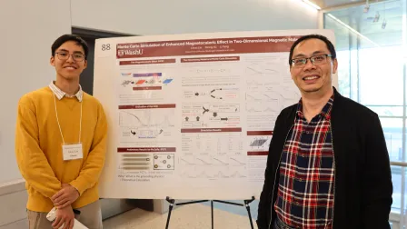 The Department of Physics was exceptionally well represented, with 28 students presenting projects spanning a remarkable range of topics - from condensed matter and astrophysics to computational modeling and the intersections of physics with biology, psychology, and brain sciences. Their research reflected both the depth and diversity of scientific exploration happening within the department and highlighted the strong culture of mentorship that supports undergraduate discovery at WashU Physics.