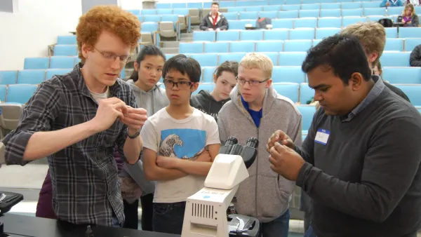 The Physics Outreach Committee aims to illustrate the role which physics plays in everyday life to inspire students to look more favorably at physics and science in general. Our hope is to show students that they can use physics to understand the world around them. In particular we try to tailor our demonstrations and hands-on activities toward their areas of interest (music, sports, etc.).